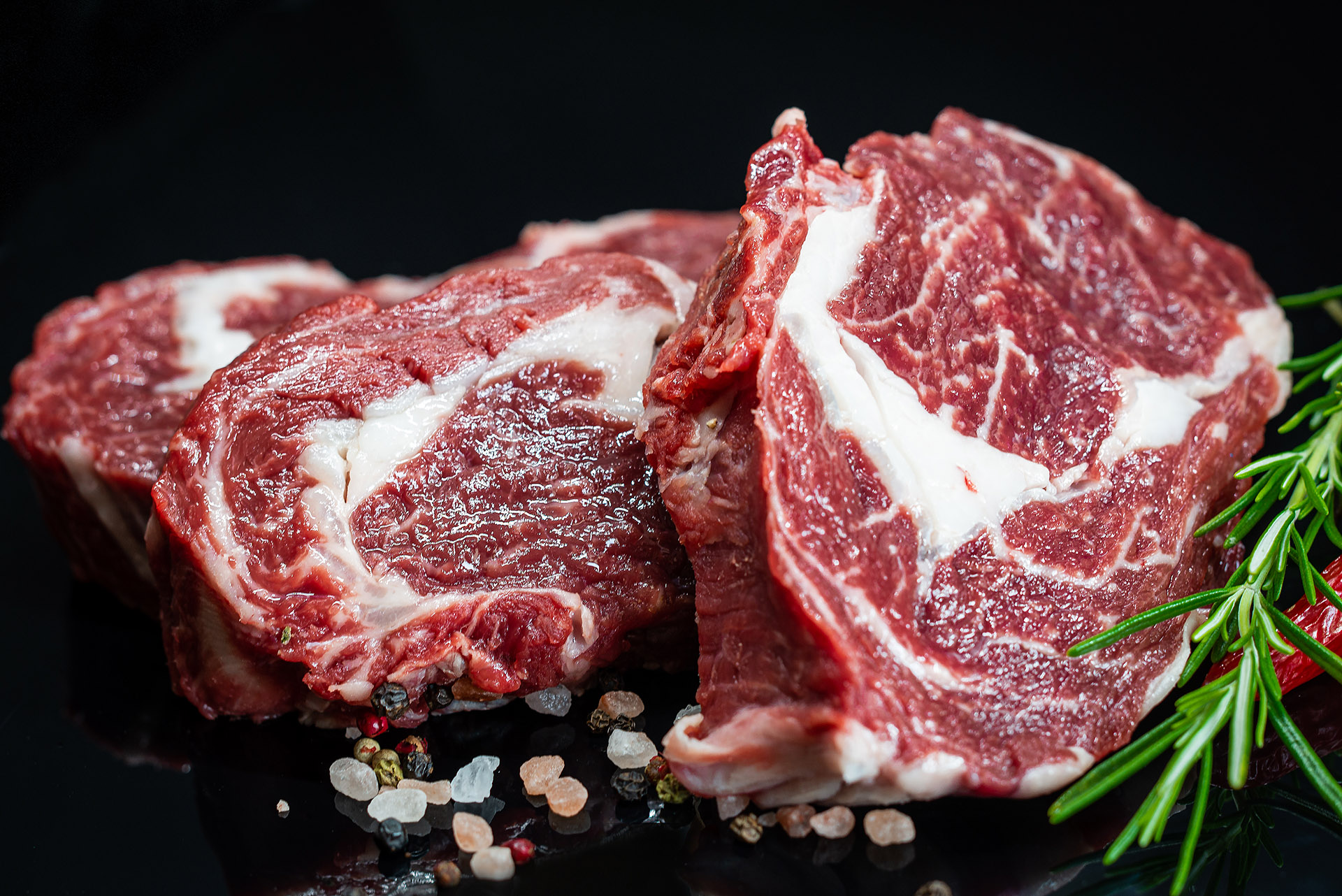 Rib Eye steak to tradycyjny stek z antrykotu. Mięso posiada wysoki poziom marmurkowatości, co przekłada się na jego delikatny smak i bogaty aromat. Stek stanowi mięso z mięśnia longissimus dorsi, który jest zlokalizowany pomiędzy łopatką a kością biodrową.
